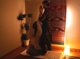 直営サロンのスタッフたちのアドバイスも受けられます。 希望者は棒を使った、タイ式のマッサージも受講できます。 |